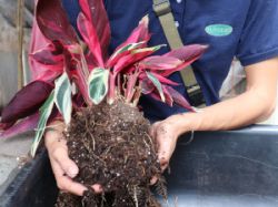 • Remove the plant from its container and lightly score or loosen the roots in all directions. Prune the roots and remove any girdling roots to ensure that the roots spread in all directions. This encourages beneficial root growth and helps the plant to settle in more quickly.